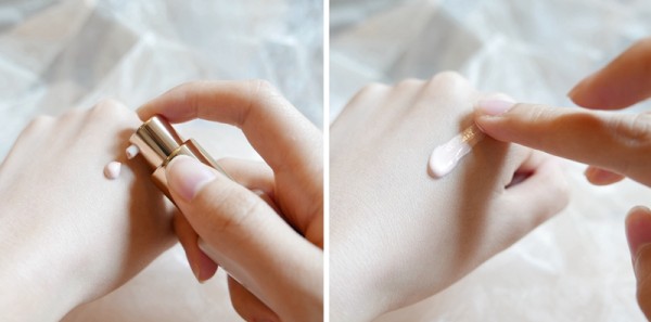 雪花秀的Makeup Balancer其實有兩款顏色-淡紫及淡粉紅。由於編者膚色較蒼白,因此選了後者為臉色加添一點紅潤感。由於這款base質地柔滑,非常容易推開,因此用量不需要多,如上圖的分量已經足夠用於全面。貫徹韓妝一向推崇的光澤感,輕輕塗均後,膚色明顯亮白了,毛孔及細紋亦被柔化,用後一段時間皮膚依然感到水潤而不乏油光,整體表現不錯。