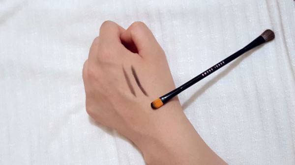 老實說,初試這款筆眉確實有點不習慣,由於它的筆頭猶如武士刀的形狀,不像其他尖頭眉筆一般一劃就有色,反而要就一就角度,用「刀鋒」那一邊畫在眉上才會上色。但亦正因為這個設計,眉筆的筆觸亦較為溫和,畫出來不會太實色,感覺自然,而且顏色深淺度比較容易控制。